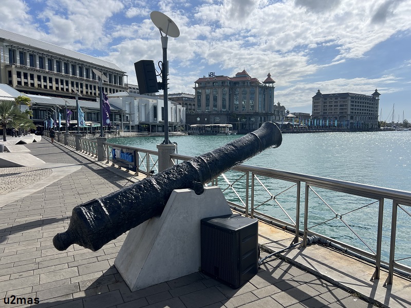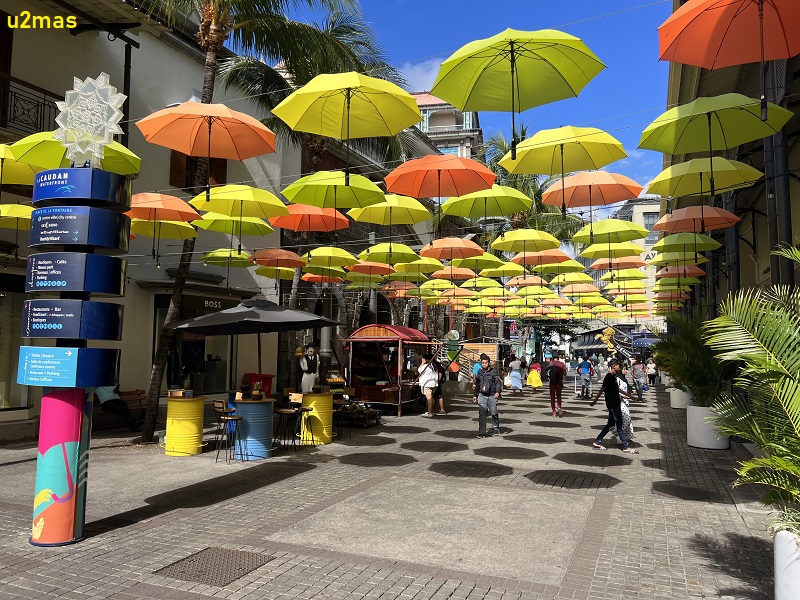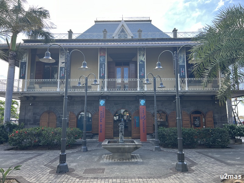 Continuamos volviendo al centro para aparcar en el Waterfront, o paseo del puerto, para ya dejar el coche y andar desde allí. No fue fácil, los parkings de pago estaban llenos y al final encontramos un rincón (y gratis) junto al Aapravasi Ghat, que visitaríamos después. A pie recorrimos el animado y colorido Mercado Central, ideal para comprar especias y recuerdos, pasamos por la Plaza de Armas y ya de vuelta al paseo para comer junto al mar, cosa que hicimos en el asiático “Twin Wok”, con noodles y pescado agridulce muy bueno por 950 MUR=20,21 € los dos. El Waterfront está renovado e impoluto, con tiendas de todo tipo, restaurantes y un mercado de artesanía, paseando hasta llegar al museo del Blue Penny, de arte e historia local, con el sello del mismo nombre como estrella y motivo de orgullo nacional.