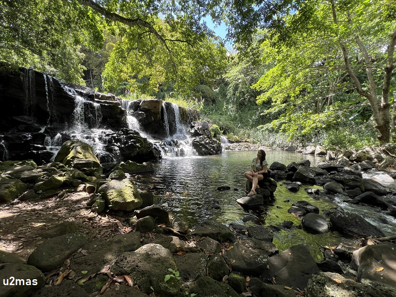 Eureka es un ejemplo perfecto de casa colonial criolla del siglo XIX, bien conservada, amueblada de la época y con explicaciones de sus estancias. La entrada costó 300 MUR=6,38 € cada uno. Los jardines están impecables y las vistas de la casa con las montañas de fondo de postal. Tampoco hay que dejar de perderse la caminata de unos 15 minutos a las cascadas del río Moka, que se inicia al final del propio jardín y está señalizada. Hay hasta 4, visitando las 2 primeras y pasando más tiempo en la segunda, llamada Bassin La Pompe, un lugar precioso para disfrutar de la naturaleza. No llevábamos bañador pero ganas no faltaron, la verdad no vimos a nadie en el agua pero tampoco carteles de que estuviera prohibido.