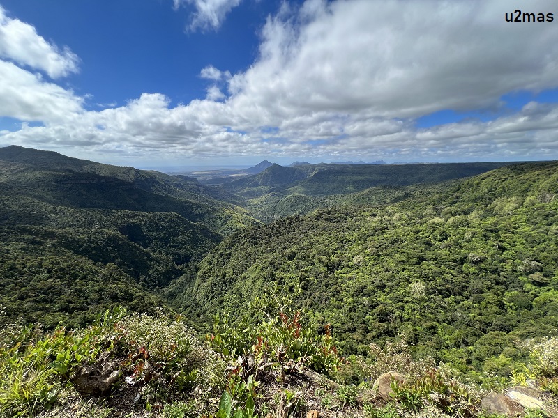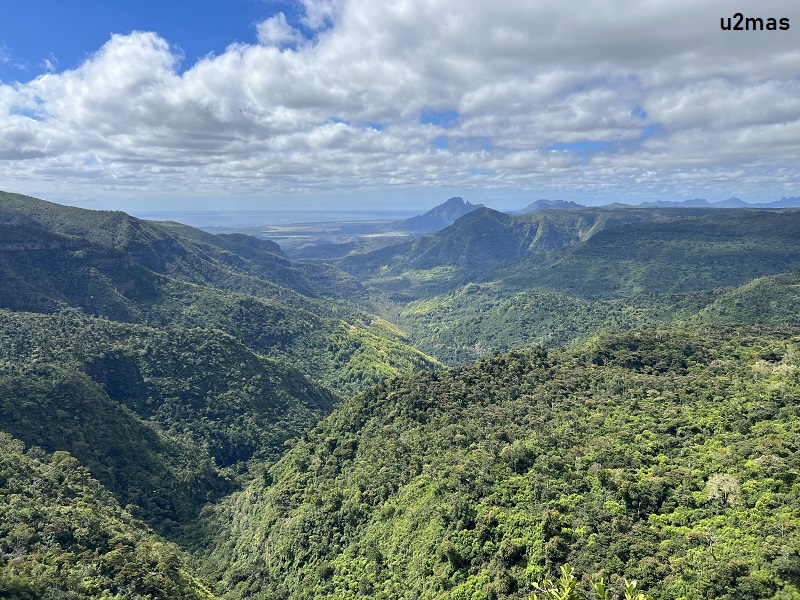 Pese a que amaneció lluvioso mantuvimos el plan original de visitar la zona montañosa del suroeste, donde está el parque nacional Black River. Lo malo, como luego supimos, fue que también había niebla en la zona, pero bueno no salió ni tan mal. En primer lugar, nos dirigimos a ver el cono de un antiguo volcán en Curepipe, el último de los suburbios unidos a Port-Louis que crean un núcleo urbano mayor y que están unidos por un moderno tranvía. El sitio en cuestión se llama Trou Aux Cerfs, tiene mirador al interior lleno de vegetación y se pueden ver monos por los alrededores.