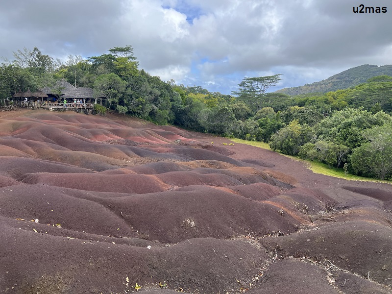 Se trata de una zona volcánica, en el que se crean varias dunas de tierra entre la abundante vegetación de los alrededores, y donde pueden verse hasta siete tonos diferentes, de ahí su nombre. Está muy cuidado, cuenta con un recinto con tortugas propias de la isla, sección de plantas endémicas, un bar, una tienda y baños. Por supuesto, ya sea a la ida o la vuelta (es una carretera sin salida), hay que parar en el mirador de la cascada de Chamarel, una impresionante caída de agua de 100 metros, que pudimos apreciar gracias a la tregua que nos dio el tiempo. Regresamos al pueblo de Chamarel, famoso por su oferta gastronómica, encontrando el “Palais de Barbazon”, un sitio auténtico con menú del día, compuesto por cuencos de pollo, cerdo, pescado, arroz y hasta cinco legumbres, todo muy especiado y rico. El precio, 1.475 MUR=31,38 € los dos.