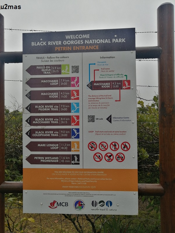 Tardamos 1 hora en llegar (55 kms), continuando por la carretera B-102 para acceder al parque por el este, llegando a uno de sus centros de información, Le Pétrin. En el mismo se puede pasear por el bosque contiguo, hay una pequeña exposición sobre la flora, fauna y geología de Black River así como información de las rutas y senderos señalizados que existen. En nuestro caso no hicimos senderismo, pero estoy seguro de que merecerá la pena. Los hay de diferente duración y dificultad.