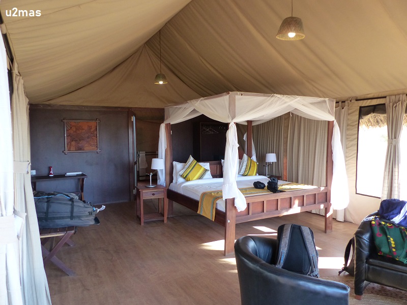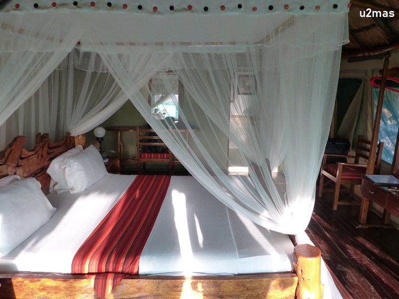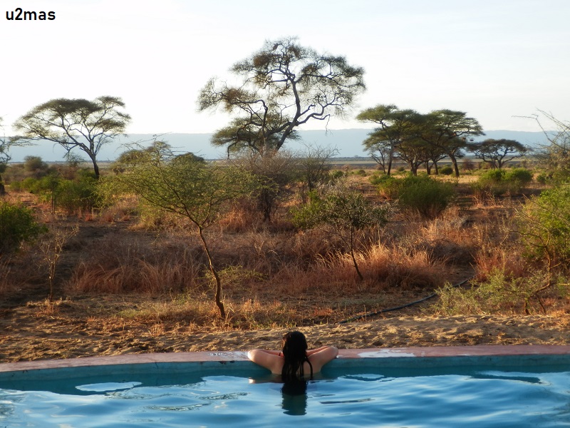 El alojamiento para esa noche fue el Manyara Wildlife Camp, pegado al lago por el norte, con wifi en la recepción, cabañas con baño propio, mosquitera en la cama e incluso una pequeña piscina común desde la que observar tanto el lago como las montañas de fondo, todo impecable la verdad. La cena, tipo buffet, estuvo genial, teniendo sólo que pagar las bebidas y alguna propina que dejamos al personal del hotel. Ese día John no cenó con nosotros, pero sí que lo haría en otros hoteles. El primer día de safari terminaba con muy buenas sensaciones y ganas de más, como no podía ser de otra manera 😉.