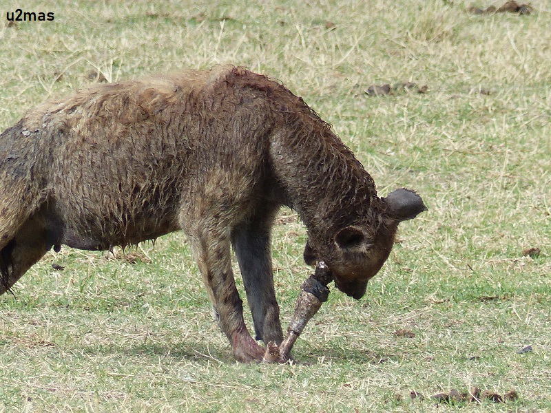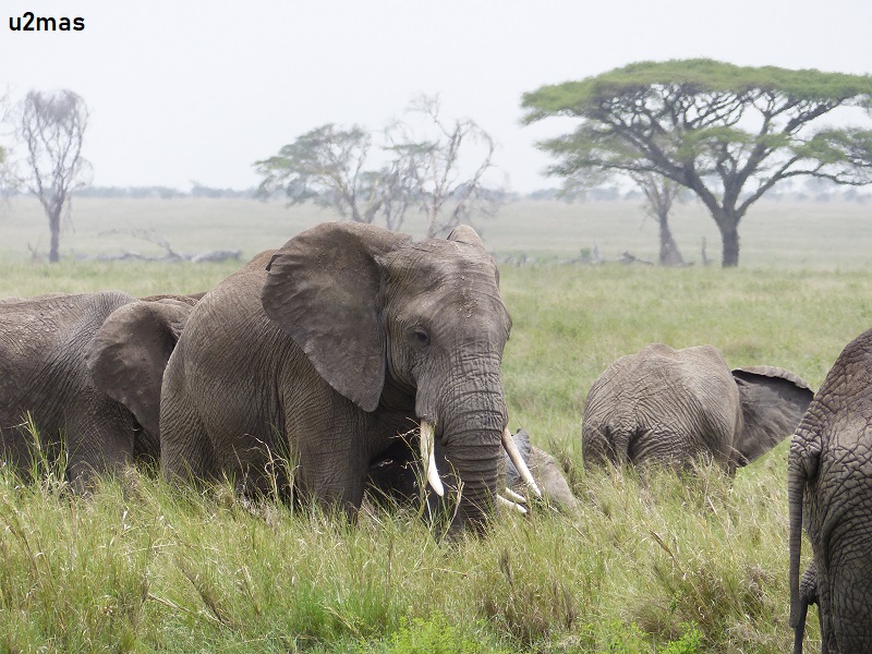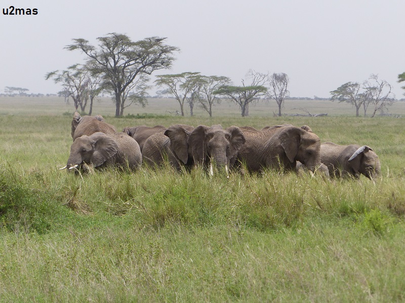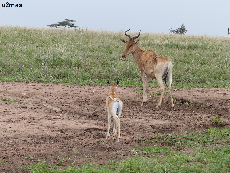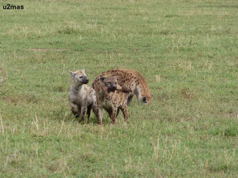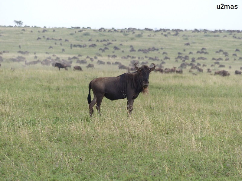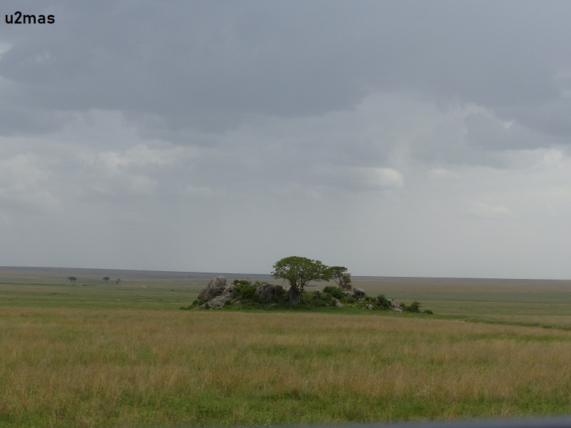 Durante la noche se dejaron oír los característicos ruidos de las hienas, que no andarían muy lejos, pues las tiendas están en mitad del parque. Además, si se quiere salir de la misma por la noche por algún motivo, se debe avisar con una linterna al vigilante correspondiente, que por seguridad suele ir armado con alguna carabina, o como pasó en otro de los alojamientos, con arco y flechas. Así pues, tras madrugar, ver el amanecer con ñus a lo lejos y desayunar muy bien, nos pusimos en marcha sobre las 8:15 horas con el día nublado y fresco.