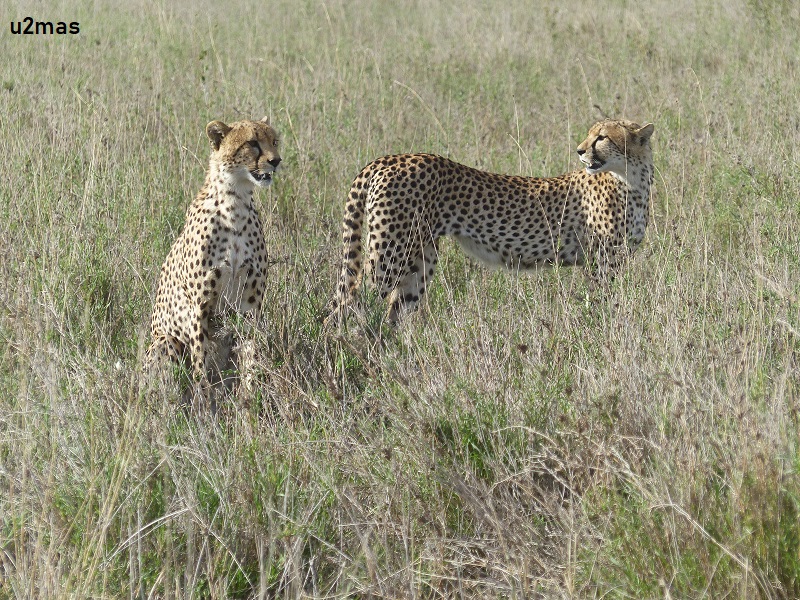 Por la tarde y hasta llegar al alojamiento, hubo multitud de avistamientos de todo tipo de animales, sumando a las grandes manadas de ñus, gacelas y cebras algunas jirafas y elefantes. Por fin vimos el primer grupo de leones a los pies de un árbol, otro grupo de guepardos y, en palabras de John, el esquivo y difícil de encontrar serval, un pequeño felino muy estilizado, así que hubo suerte 😊. Comentar que la afluencia de vehículos era mayor aquí, sin que fuera agobiante ni disparatado, juntándose sobre todo y como es lógico con los animales carnívoros, que son muchos menos en proporción. De nuevo, la experiencia de nuestro guía fue fundamental para saber colocarse y esperar cuando tocaba, con una paciencia que dio muy buenos resultados.