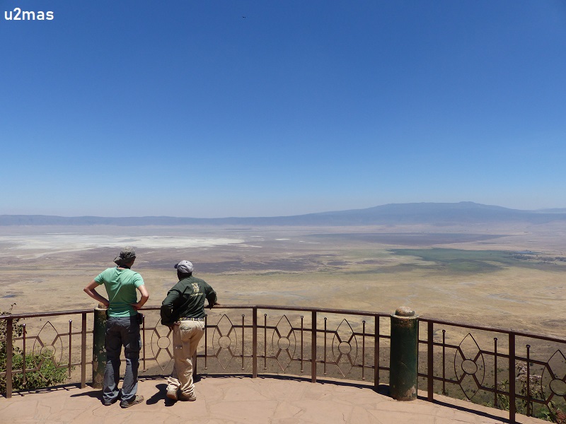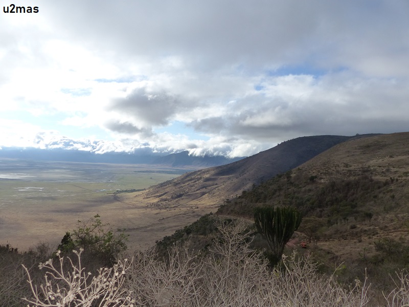Ya en ruta, fuimos ganando altitud rápidamente llegando hasta los 2.500 metros en el mirador del cráter de Ngorongoro, otro fascinante parque natural que visitaríamos a la vuelta. Previamente paramos en un par de tiendas, una de ellas una galería para turistas y una segunda más local y, en consecuencia, fueron más insistentes. A partir de la puerta de entrada al área de Ngorongoro la carretera pasaba a pista de tierra, en bastante buen estado. Hacer constar que tanto en las tiendas, como en las entradas a los parques y en el mirador había baños, para tenerlo en cuenta 😉.