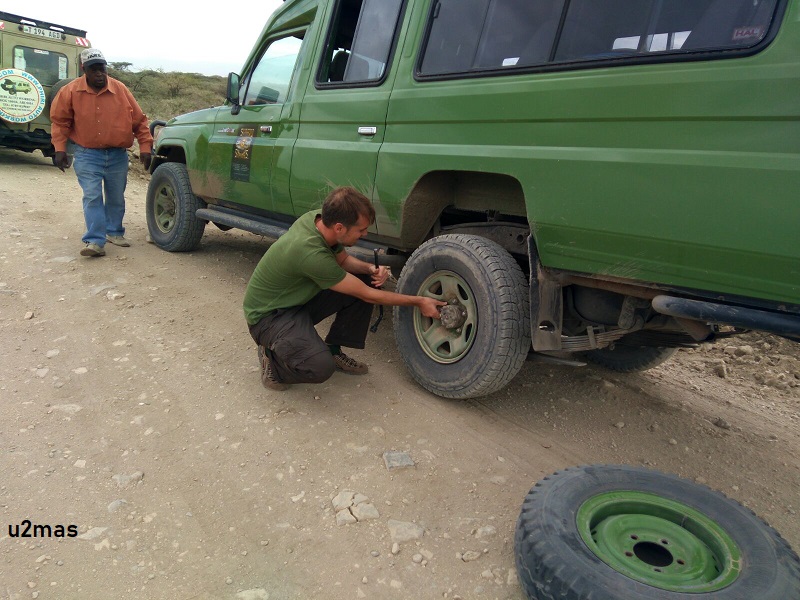 Continuamos camino con pinchazo incluido, si bien todos aquí llevan al menos una rueda de repuesto, dándonos la opción John de visitar una villa masai sin que estuviera incluido, al precio de 50 $=42,73 €. Tras deliberar un poco decidimos ir, encontrando algunos pros y contras en la experiencia.