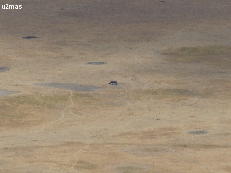 En el citado lago también avistamos hipopótamos y varios tipos de aves, prosiguiendo la marcha hasta un área boscosa previa a la pista de subida y por lo tanto salida del cráter, que está pavimentada. En este último lugar pudimos ver búfalos, cebras, monos, gacelas, leones a lo lejos y elefantes en la ladera. Avanzamos, ya arriba, hasta el mirador del cráter en el que paramos a la ida, y desde allí John fue capaz de identificar un rinoceronte, que hasta entonces nos habían dado esquinazo. Ciertamente costaba verlo, pero con los prismáticos y cámara al menos se sabía lo que era. Es lo que tiene la fauna salvaje, no está ahí para ti 😊.