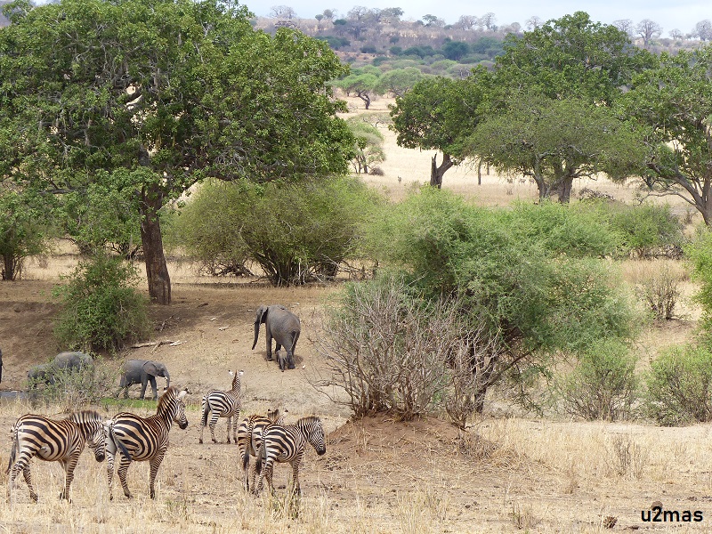 Sin duda, nos mereció la pena levantarnos al amanecer para disfrutar del ambiente desde el porche, desayunando e iniciando la marcha a las 8 para entrar al parque por la puerta de Sangaiwe, cercana al alojamiento. La primera parte del recorrido fue hacia el este, viendo mangostas, elefantes, dik-dik, monos y cebras y apareciendo los baobabs como árbol dominante. Pasamos por la colina de Tarangire, muy seca, bajando hasta la zona más húmeda que seguía el curso del río del mismo nombre.