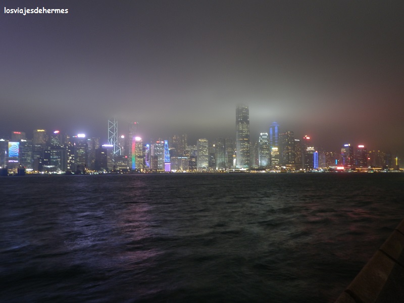 Aunque se puede pasar a la península en metro (va por el fondo del mar) hacerlo en el ferry es muy recomendable por las vistas del “skyline” de la parte de la ciudad de la isla, que como ya dije es donde están los edificios más altos, apenas duró 5 minutos en llegar al paseo marítimo de Tsim Sha Tsui y me costó 3,40 HKD=0,41 € por ser fin de semana, en días laborables costaba 2,50 KHD=0,30 €. Ya en la península me recorrí el paseo de lado a lado disfrutando de las impresionantes vistas del centro financiero, pues pese a empezar a llover y las nubes la imagen tenía su encanto, además el ambiente de esta zona es muy animado pasando por la Avenida de las Estrellas, al estilo de Hollywood, si bien sólo conocía a Bruce Lee y Jackie Chan.