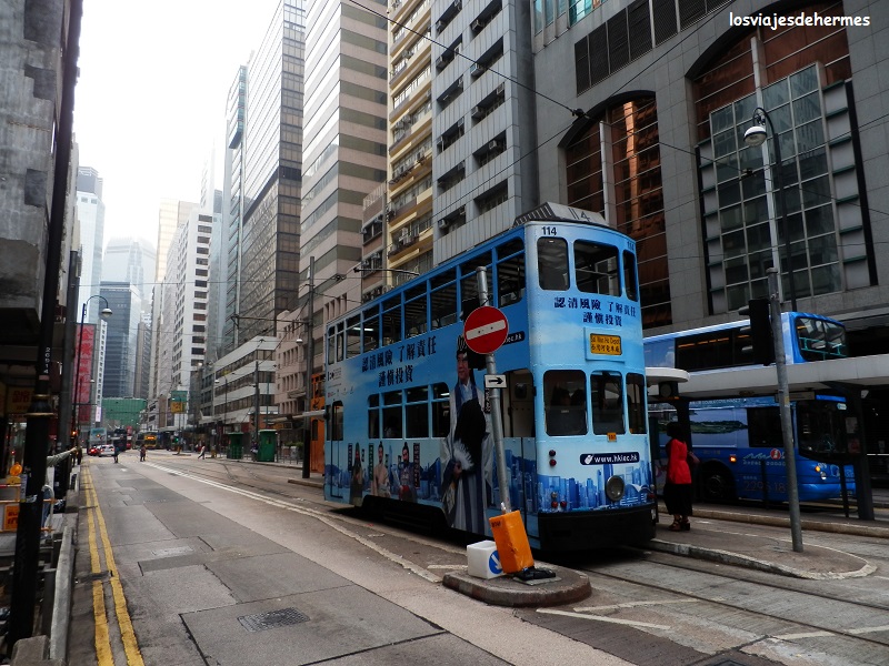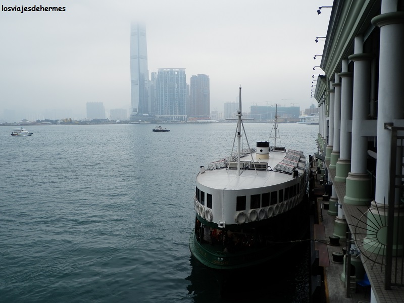 Bajé a comer algo ligero y rápido a la estación central y al Hong Kong Park, pero en tranvía, que es un medio muy barato y recomendable de ver la ciudad (el billete costaba 2,30 HKD=0,27 €, había que pagarlo exacto y la Octopus Card sólo valía en el metro), todas las líneas que hay discurren al norte de la isla de Hong Kong y son vagones de dos plantas con buenas vistas si se va arriba. En pocas paradas llegué a este parque con un enorme aviario, varios lagos y cascadas artificiales, que supone un verdadero oasis entre tanto hormigón y cemento, haciéndome algunas fotos con edificios altos como la torre del Banco de China al fondo. En uno de los extremos del parque está el funicular para subir al Peak, pero con lo nublado del día decidí volver en tranvía a la estación central y de allí andando al muelle de los famosos ferries Star para cruzar el Victoria Harbour (puerto).