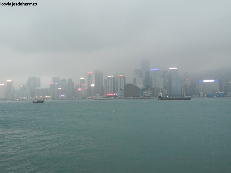 Aunque se puede pasar a la península en metro (va por el fondo del mar) hacerlo en el ferry es muy recomendable por las vistas del “skyline” de la parte de la ciudad de la isla, que como ya dije es donde están los edificios más altos, apenas duró 5 minutos en llegar al paseo marítimo de Tsim Sha Tsui y me costó 3,40 HKD=0,41 € por ser fin de semana, en días laborables costaba 2,50 KHD=0,30 €. Ya en la península me recorrí el paseo de lado a lado disfrutando de las impresionantes vistas del centro financiero, pues pese a empezar a llover y las nubes la imagen tenía su encanto, además el ambiente de esta zona es muy animado pasando por la Avenida de las Estrellas, al estilo de Hollywood, si bien sólo conocía a Bruce Lee y Jackie Chan.