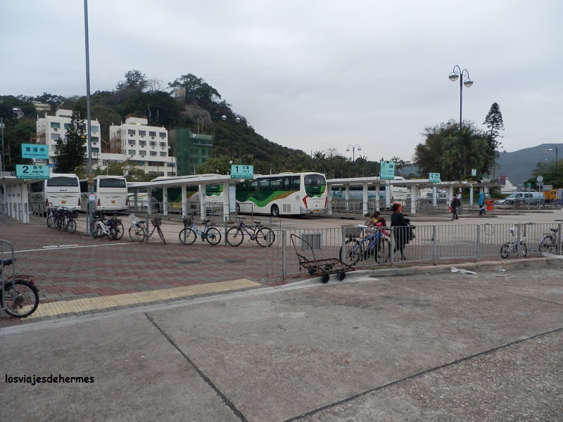 A esta zona se podía llegar en un ferry directo desde el puerto de Hong Kong y desde luego si no hubiera tenido la intención de subir al Buda lo habría utilizado, pero bueno tuve que dar algo más de vuelta y llegar en el autobús 3-M (que salía cada 30 minutos y costó 10,50 HKD=1,23 €) desde Tung Chung hasta Miu Wo (en Silvermine Bay), zona que queda al este de la isla de Lantau. Pese a lo nublado del día pude apreciar, durante el trayecto de una media hora, algunas pequeñas playas y calas que uno no asociaría a un lugar como Hong Kong.