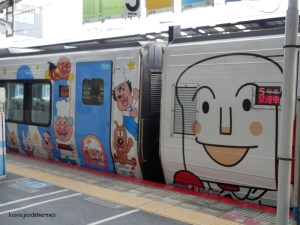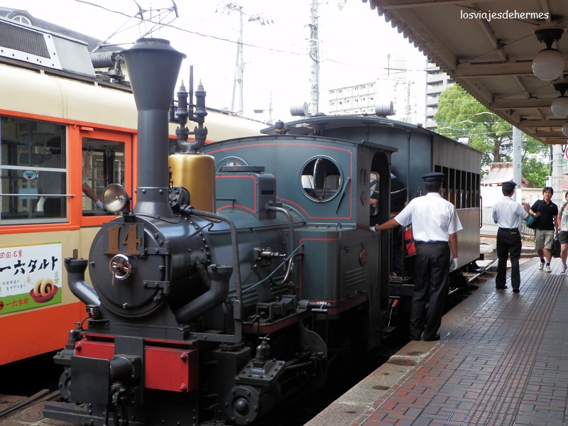 Tuvimos que madrugar para coger el shinkansen de las 07:20. Para llegar a Matsuyama nos bajamos en Okayama (un poco más de una hora), donde cogíamos el tren Shiokaze, que entra en la isla de Shikoku por el espectacular puente Seto-Ōhashi, llegando a las 11:14 (en total casi 4 horas de viaje). Hacer constar que todos los trenes tienen su nombre, incluidos los shinkansen (nombre genérico de los trenes bala), donde los llamados Nozomi no entran en el JR Pass (viene toda la información en el folleto que os mandan a casa).