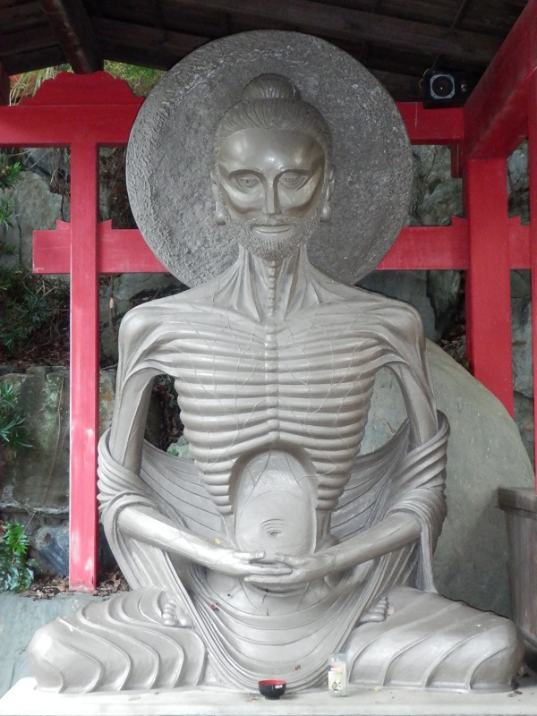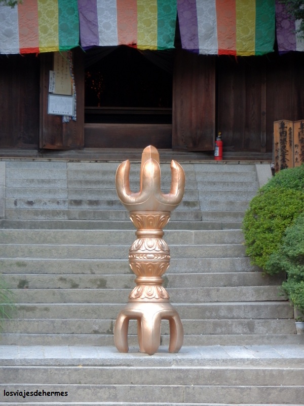 Subimos por la calle que hay detrás de los baños hasta unas enormes escaleras que llevan al santuario de Isaniwa (gratuito), desde el que había otra gran vista, siguiendo por una carretera en la que dejamos unas pistas de tenis a la derecha, pasamos por un bosque de bambú y visitamos el Mandala tou, una zona con todo tipo de budas (algunos que no habíamos visto como uno esquelético) y sin apenas gente hasta llegar al templo Ishite-ji (gratuito), que está dentro de la ruta de los 88 templos sagrados de Shikoku, por lo que tenía un aire especial con sus templos secundarios o la pagoda de tres pisos entre otros. En total andaríamos unos 4 ó 5 km tardando hora y media aproximadamente.