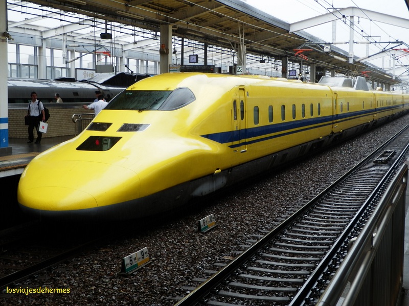 Abandonamos Matsuyama a primera hora cogiendo el tren Shiokaze a Okayama un minuto antes de su salida (tarda 2 h 50`), después de llegar a la estación JR con el tranvía 5 (150 ¥=1,45 €). En Okayama tuvimos la suerte de ver un shikansen amarillo que circula excepcionalmente y es conocido como el doctor yellow (según nos informó nuestro amigo Kenta vía Facebook), cogiendo luego el que teníamos reservado, llamado Sakura, hasta la estación de Hiroshima (unos 40`) donde comimos antes de las 13 h (680 ¥=6,58 € por un plato con arroz, sopa y pescado bastante bueno).