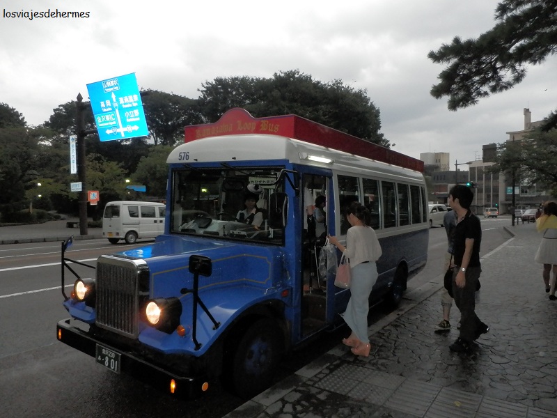 Con el retraso llegamos algo tarde, consiguiendo un mapa en la oficina de turismo de la estación donde nos indicaron cómo llegar al albergue, que apenas está a 5 minutos desde la estación JR. Dejamos las cosas en nuestra habitación del Guesthouse Namaste y sin perder tiempo fuimos al punto fuerte de la ciudad, los jardines Kenroku-es. Para ello cogimos el Loop Bus de Kanazawa, que es una línea que une todos los puntos de interés de la ciudad, en la parada 1, junto a la estación JR (cuesta 200 ¥=1,97 €; si pasáis más tiempo puede interesar el pase de un día por 500 ¥=4,92 €) bajando en la 9, entre el castillo (300 ¥=2,95 € hasta las 16:30, no pasamos) y los jardines que también cuestan 300 ¥=2,95 € y abren hasta las 18 h. y están calificados como uno de los tres mejores de Japón.