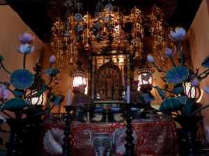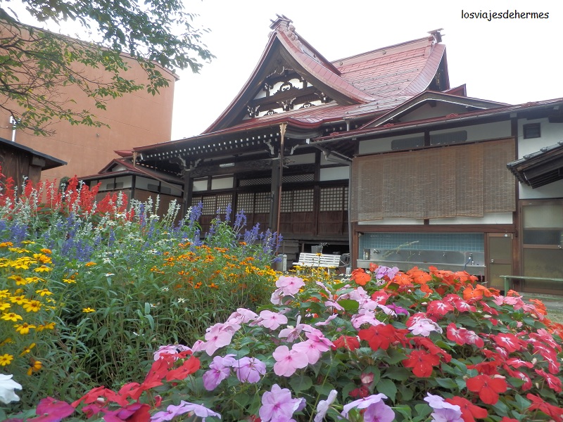 El centro de esta pequeña población de 95.000 habitantes está muy recogido y se puede ir andando a todos lados, destacando una zona de templos, una serie de calles con tintes tradicionales y una aldea (llamada Hida no Sato) que recrea las construcciones típicas de Hida a modo de un pequeño parque temático (no fuimos pues en Shirakawa-gō veríamos estas construcciones en su entorno). Primero dejamos las cosas en el templo Zenkō-ji (check-in de 15 a 19 h.), donde se aceptan huéspedes y al que se tarda no más de 10 minutos desde la estación JR (donde hay oficina de turismo con mapas en español).