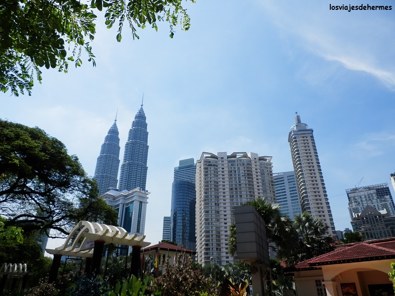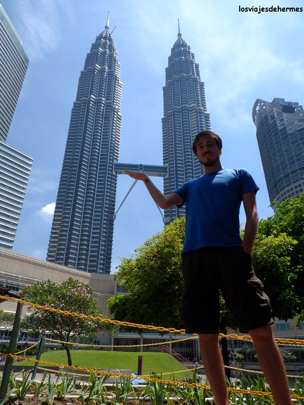 Como plato fuerte nos disponíamos a visitar el símbolo de la ciudad y del país en general, las impresionantes torres Petronas, que en su día fueron el edificio más alto del mundo con sus 452 metros. Para llegar hasta ellas, en la zona del Kuala Lumpur City Centre (KLCC), utilizamos el monorraíl desde la cercana parada de Tun Sambanthan hasta la de Bukit Nanas (2,10 MYR=0,51 € cada uno), teniendo que andar un rato hasta encontrar de frente el espectacular edificio al que da nombre la compañía malaya de petróleo y gas Petronas.