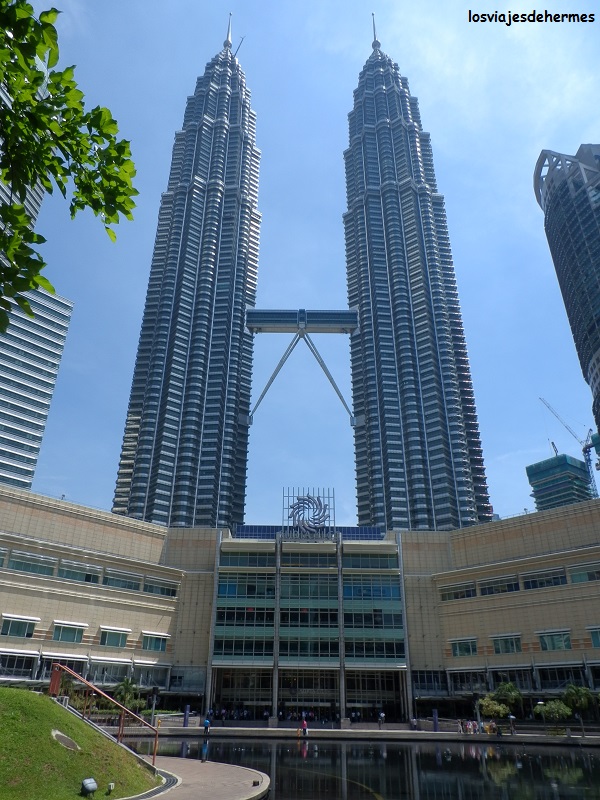 Lo miramos desde todos los ángulos posibles encontrando la mejor panorámica y las mejores fotografías desde el parque del KLCC, muy cuidado y con bancos para sentarse y un pequeño lago, todo ello tras cruzar el enorme centro comercial que ocupa la base de las torres, pues llegamos a ellas desde el lado opuesto al parque. Hay un mirador en la planta 41 (coincide con el puente que une las dos torres), pero que costaba 80 MYR=19,70 € por cabeza, desechando la idea al parecernos muy caro y saber que casi por la mitad podríamos subir a la Menara KL Tower, una torre de comunicaciones con otro mirador y la ventaja de que se ven las torres Petronas (cosa que en su propio mirador sólo se hará parcialmente).
