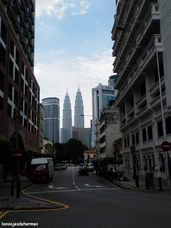 Como plato fuerte nos disponíamos a visitar el símbolo de la ciudad y del país en general, las impresionantes torres Petronas, que en su día fueron el edificio más alto del mundo con sus 452 metros. Para llegar hasta ellas, en la zona del Kuala Lumpur City Centre (KLCC), utilizamos el monorraíl desde la cercana parada de Tun Sambanthan hasta la de Bukit Nanas (2,10 MYR=0,51 € cada uno), teniendo que andar un rato hasta encontrar de frente el espectacular edificio al que da nombre la compañía malaya de petróleo y gas Petronas.