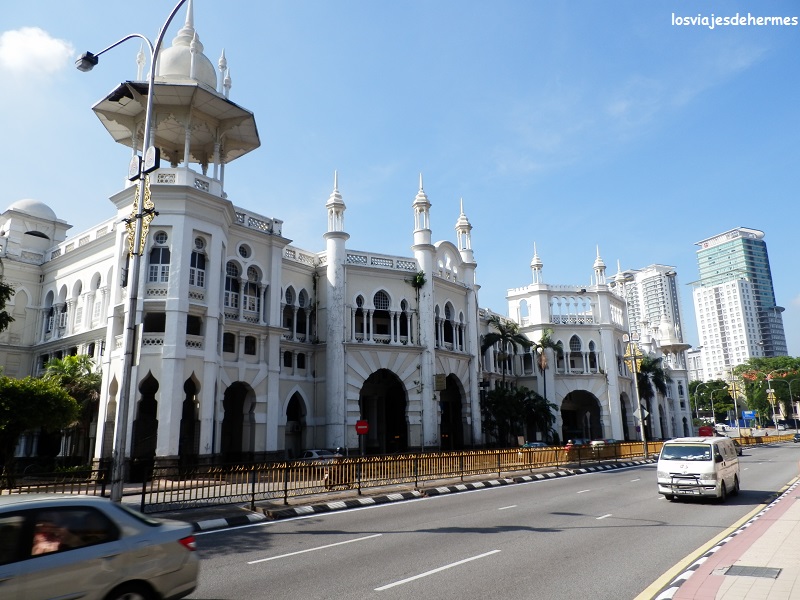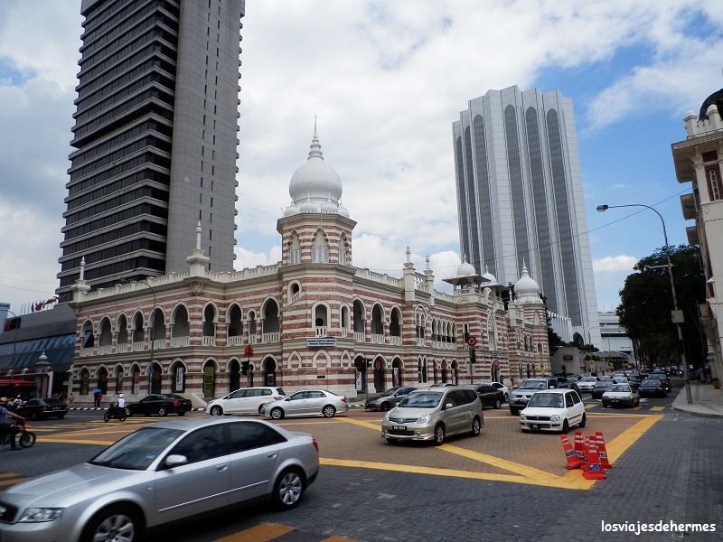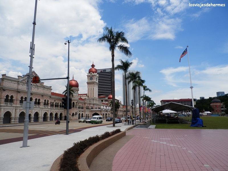 Nuestra siguiente parada sería la famosa plaza Merdeka, epicentro de la antigua ciudad colonial y el lugar desde que el país proclamó su independencia. Es una gran explanada con un mástil y una bandera enorme y varios edificios de interés como el del sultán Abdul Samad. Entramos por unos jardines con una fuente que hay en su parte norte, desde donde se ve la catedral de Santa María, recorriendo después la explanada de la plaza y visitando la exposición de una galería que era gratuita (Kuala Lumpur city gallery) y contaba con una gran maqueta de toda la ciudad. Desde allí enlazamos con el circuito por “chinatown” cruzando la calle Lebuh Pasar Besar y girando a la derecha en Hang Kasturi hasta el mercado central, un bonito edificio repleto de puestos con artesanía, ropa, joyas, relojes, casi de todo. Callejeamos un poco más entrando en la famosa calle Petaling en su extremo norte, que es el verdadero eje central de “chinatown” y hace las funciones de mercado nocturno o diurno, lo mismo es, pues también está llena de puestos de todo tipo. Se puede regatear y aunque no se compre merece la pena darse una vuelta a curiosear (tiene hasta techo, ideal en caso de lluvia).