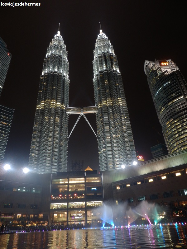 Lo miramos desde todos los ángulos posibles encontrando la mejor panorámica y las mejores fotografías desde el parque del KLCC, muy cuidado y con bancos para sentarse y un pequeño lago, todo ello tras cruzar el enorme centro comercial que ocupa la base de las torres, pues llegamos a ellas desde el lado opuesto al parque. Hay un mirador en la planta 41 (coincide con el puente que une las dos torres), pero que costaba 80 MYR=19,70 € por cabeza, desechando la idea al parecernos muy caro y saber que casi por la mitad podríamos subir a la Menara KL Tower, una torre de comunicaciones con otro mirador y la ventaja de que se ven las torres Petronas (cosa que en su propio mirador sólo se hará parcialmente).