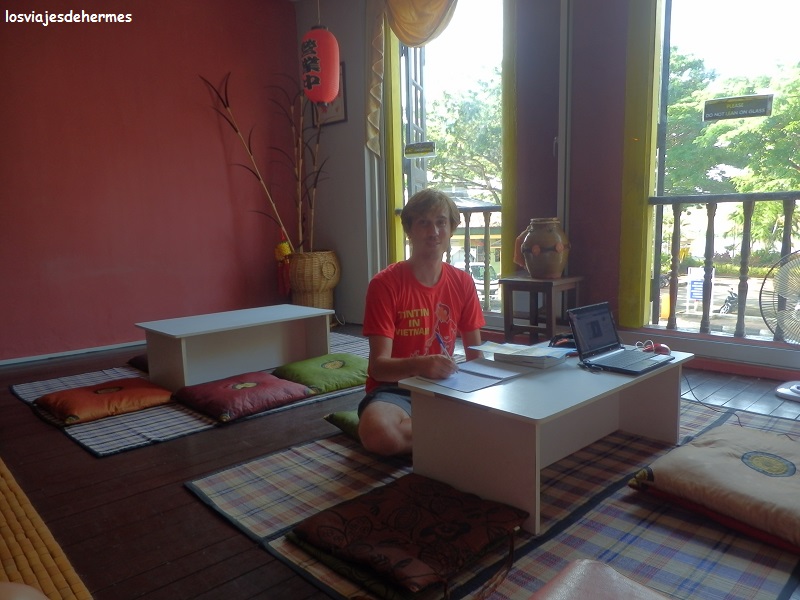 Llegamos justo a tiempo de que los taxis no nos cobraran un 50 % más (de 0 a 6 horas), pagando la tarifa fija de 26 MYR=6,50 € en una taquilla que hay en la terminal, además por lo que pudimos comprobar el taxi era la mejor forma para ir a la ciudad desde el aeropuerto. Con todo llegamos un poco tarde al alojamiento que ya habíamos reservado previamente en la web hostelbookers, el “Wo Jia Lodge”, un sitio muy recomendable situado en la 1ª planta del 17 de Main Bazaar, nos costó 48 MYR=11,83 € la noche en una habitación doble con cocina y baño compartido, desayuno básico incluido, wifi en la habitación, ventilador, toallas y una zona común realmente agradable (con vistas al río Sarawak) así como la gente que ahí trabajaba, que fueron, una vez más, de gran ayuda.