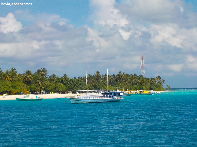 A bordo de un ferry más aireado que el anterior y con posibilidad de ir en el techo, navegamos durante casi 4 horas desde Maafushi a Thinadhoo (recuerdo que costó 53 MVR=3,23 € cada uno), en el corazón del atolón de Vaavu, dando la sensación de que cada vez el agua era más transparente y las islas más salvajes y menos urbanas, con playas vírgenes y zonas de selva y jungla entremezcladas con pequeños pueblos, esa fue la impresión que nos dio la isla de Fulidhoo, parada previa a Thinadhoo, ya en Vaavu.