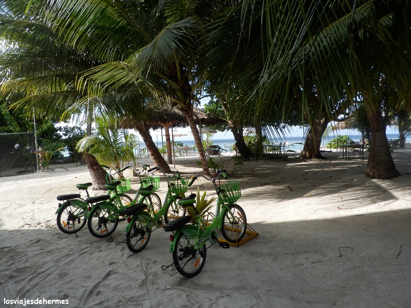 Tengo que comentar que el trato con el personal del Plumeria fue exquisito desde el minuto uno, con el personal de cocina, de limpieza, los camareros y por supuesto mención especial para Magda y Jose, que nos hicieron sentir como en casa y con los que uno no se aburre. El Plumeria Guest House lo reservamos en booking y fue todo un acierto, de los mejores alojamientos en los que hemos estado, limpieza impecable, hasta dos veces al día la habitación y haciendo figuritas con las toallas, unos artistas vaya, aire acondicionado, nevera con minibar, TV (para quien la quiera una vez más), un pequeño balcón, baño completo, desayuno buffet incluido, wifi…no le falta de nada, además desde el balcón veíamos el mar, pues tienen dos edificios y nos alojaron en el más cercano a la playa, que también cuenta con mesa de billar, futbolín y hasta unas pequeñas bicis para darse una vuelta por la isla, en el otro está el comedor y hay una pequeña piscina que también podíamos usar.