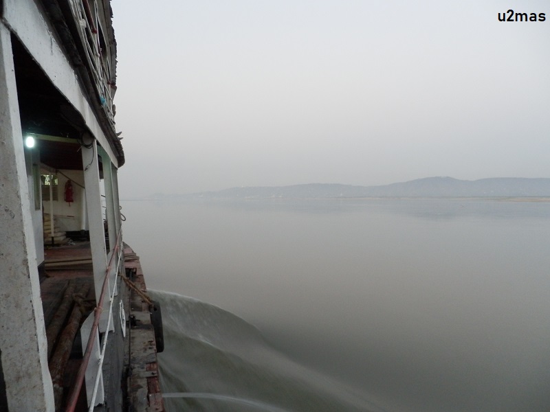 El día se hizo largo y si estaba previsto que llegáramos a las 19:30 horas desde las 6:00 (13 h 30`), lo cierto es que atracamos en el muelle de Nyaung-U, la población más cercana a Bagan, a medianoche, es decir, casi 5 horas más de lo previsto. Casi toda la culpa de ello la tuvo la varada que sufrimos en una parte del río, donde los fondos es probable que cambien con rapidez por los sedimentos que lleva, siendo ayudados por varios botes pequeños para poder salir.