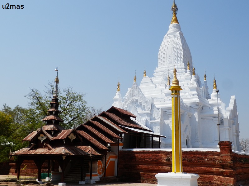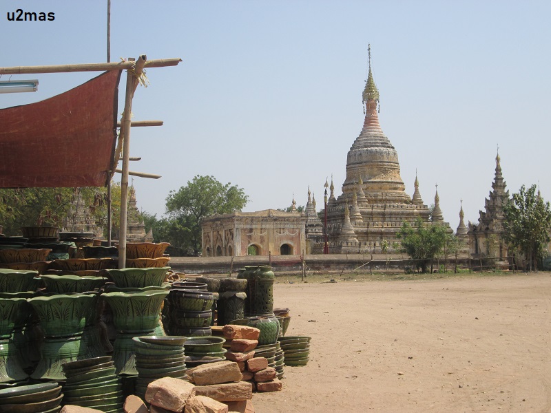 Continuamos el recorrido por los principales templos que se encuentran dentro del recinto amurallado (conservada por tramos), pasando por el de That-byin-nyu y Shew-gu-gyi, muy juntos el uno del otro, seguidos de la Pagoda Bu-paya, junto al río y el templo de Gaw-daw. Como véis los nombres son complicados y es fácil equivocarse. En esta zona se encuentra el Palacio, reconstruido, y un museo, que se pagan aparte (5.000 MMK=4,28 €), prefiriendo seguir con la bici hacia los lugares que teníamos marcados.