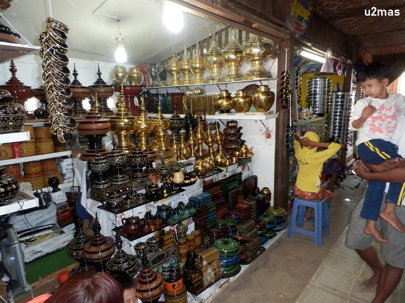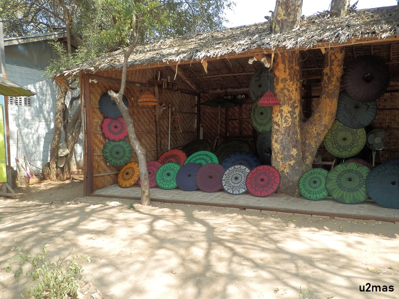 Como Philipa iba con una marcha más siguió adelante sin nosotros, que preferíamos un ritmo más tranquilo. Todavía en el pueblo dimos un breve paseo por el templo Shwe-la-yaung, y pusimos rumbo al norte atravesando Old Bagan y a Nyaung-U, pues sumaban otros 10 kms y ya íbamos cansados. El recorrido total de la etapa de hoy estaría sobre los 35 kms. El resto de la tarde aprovechamos para descansar, buscar un bar con buen internet para las comunicaciones y dar una vuelta por los comercios de la calle Anawrahta Road, ideal para comprar recuerdos y cenar en algún puesto callejero (1.700 MMK=1,46 € por unos pinchos y agua). Reseñar por último que al dejar las bicis gestionamos otro vehículo para volver a ver el amanecer al día siguiente, siendo un híbrido entre bici y moto eléctrica, que llamaban e-bike y costaba 5.000 MMK=4,28 €.