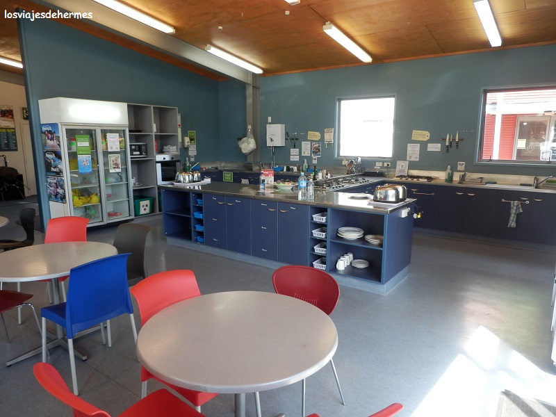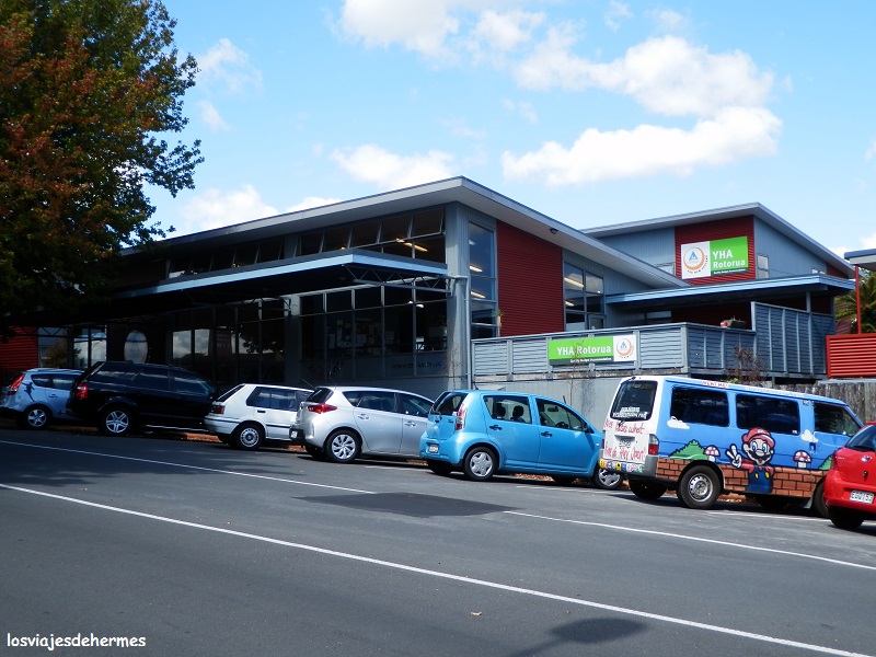 Una vez abajo continué hasta la ciudad, de 70.000 habitantes, entrando por Lake Road y localizando enseguida el albergue de Hostelling International en 1278 Huapapa Street (abreviado el YHA Rotorua), teniendo plaza en una habitación de 6 camas con baño compartido por 23 NZD=14,70 € la noche al ser socio (de lo contrario serían 26 NZD=16,61 €). Como siempre (y más en países como Nueva Zelanda) los albergues del triángulo azul son una garantía, entre las facilidades con las que cuenta está el wifi gratis para los socios, la lavandería y una cocina enorme y muy bien equipada, todo ello impecable y limpio.