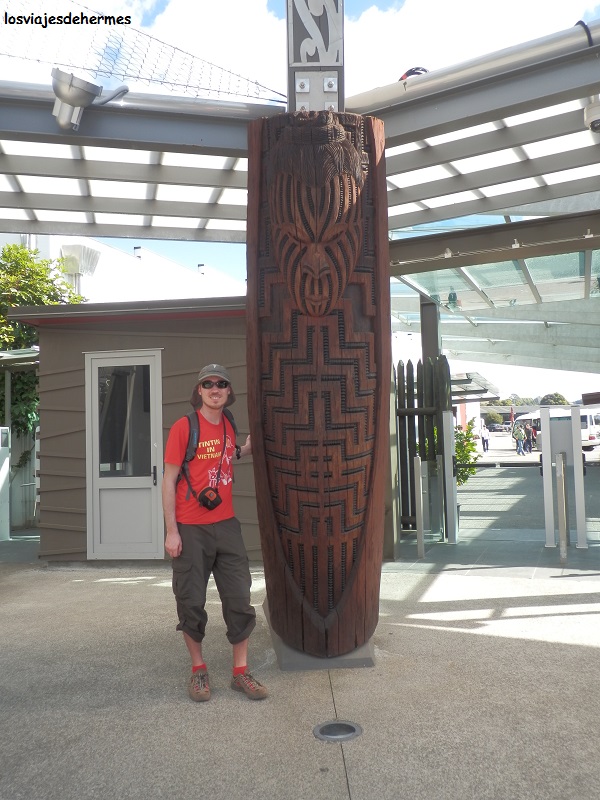Comí en un “Domino`s pizza” en Lake Road por 5 NZD=3,19 € una hawaiana, me instalé en al albergue y a visitar el parque geotérmico y villa cultural maorí de Te Puia, al sur de la ciudad a unos 3 kms del centro, una de las joyas de Rotorua tanto por los géiseres como por la influencia de la cultura maorí, que aquí alcanza el 35% de la población. Por estar alojado en el YHA me ahorré 5 NZD=3,19 € pagando finalmente 43,70 NZD=27,89 € (lo dicho no hay entrada barata en Nueva Zelanda) llegando a tiempo de unirme a la visita guiada de las 4 de la tarde. El guía fue de lo más simpático en la hora y media que duró la visita, pudiendo seguir bastante bien las explicaciones (voy a ser optimista y decir que me enteré del 60 ó 70% de lo que dijo).