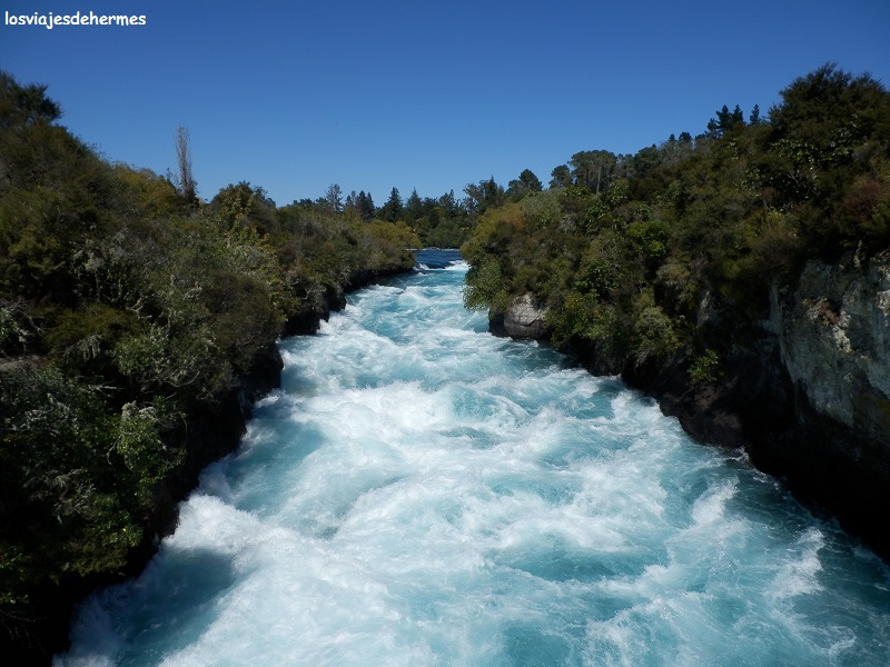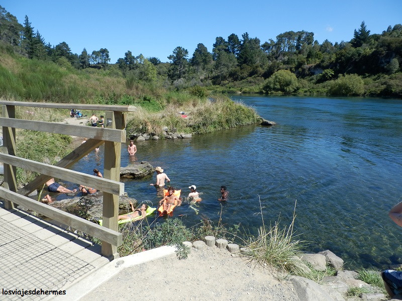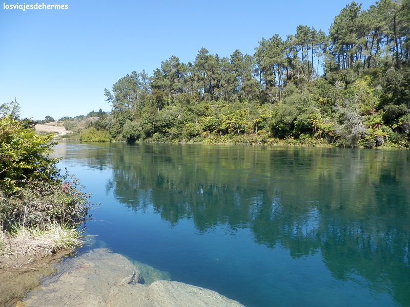 La lista de actividades a realizar aquí es infinita, ya sea piragüismo, vela o kayak en el lago, deportes de aventura en el río Waikato (hay una zona de rápidos) o paseos y rutas por áreas como Craters of the Moon o las Wairakei Terrace (todo ello de pago), por lo que elegí la opción gratuita de visitar las cascadas de Huka, sabiendo de una zona de baño libre y agua caliente gracias a los manantiales geotérmicos de la zona. Para ello, ya en la ciudad, giré a la izquierda por Spa Road hasta llegar al Spa Thermal Park donde se puede aparcar y empezar una ruta de 2 horas aproximadamente (ida y vuelta) hasta la cascada. Hacer constar que, si no se dispone de tiempo, antes de llegar a Taupo, hay un desvío para ir directamente a las cascadas.