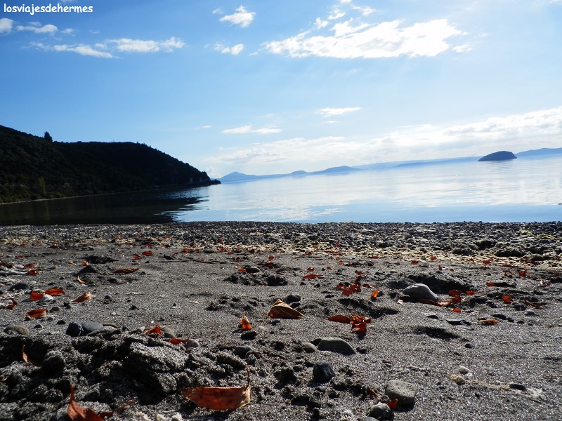 Mi viaje continuaba por la carretera 1, rodeando buena parte de los 193 kms que el lago tiene de perímetro (concretamente hay 50 entre Taupo y la población de Turangi), parando donde me apetecía para acercarme a la orilla y contemplar las vistas del lago desde diferentes ángulos. Desde esta población se toma la carretera 41 apenas 3 kms y se coge la 47 que llega hasta National Park (otros 50 kms este último tramo), trayecto en el que el paisaje cambia por completo, dejando el lago Rotoaira a la izquierda y cruzando el Tongariro National Park con las inconfundibles siluetas de los cráteres volcánicos del Ngauruhoe y el Ruapehu a lo lejos, todo un espectáculo. Durante la última parte estuve acompañado de dos alemanes que hacían autostop y a los que recogí en Turangi, una práctica común y relativamente segura en Nueva Zelanda, que además dio al traste con mi idea original de compartir gastos de combustible con otros viajeros que conociera en los albergues (en una suerte de blablacar improvisado), acabando por hacerlo gratis.