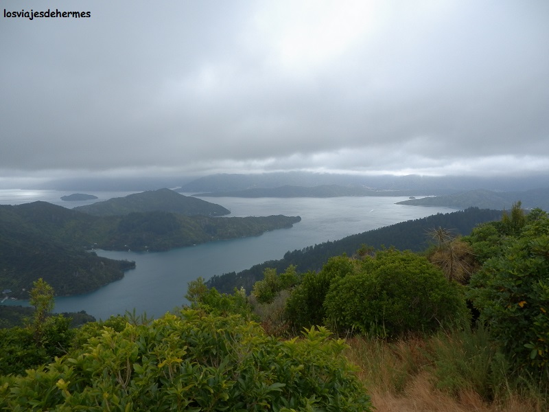 Con una longitud total de 71 kms que unen la Ship Cove (al norte) con Anakiwa (junto al fiordo Queen Charlotte), esta ruta es una de las consideradas como “grandes”, necesitando entre 3 y 5 días si se quiere recorrer en su totalidad a pie. Yo me uniría al sendero en Te Mahia para ascender al mirador de Onahau, una colina desde la que se divisan los dos fiordos de los que he hablado a la vez, así como todos los salientes y entrantes de esta tierra caprichosa. Fue una hora de caminata ir y otra volver, descansando y recuperando fuerzas en el punto alto (además la lluvia me respetó) encandilado con lo que mis sentidos me transmitían. De regreso a la carretera deshice el camino hasta Linkwater y desde allí continué por la Queen Charlotte Drive otros 14 kms hasta Havelock.
