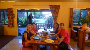 Tal y como indicaba el pronóstico la lluvia apareció a primera hora y permaneció con nosotros durante todo el día, además de forma contundente por lo que lo más sensato era permanecer en el alojamiento. Al menos hicimos un grupo muy majo y nos dedicamos a los juegos y pasatiempos que tenía el albergue, quedando en ir juntos a Abel Tasman al día siguiente (que parece ser que la tormenta habría pasado), encontrando descuentos en internet -recuerdo páginas de la introducción con ofertas gobook.co.nz y grabone.co.nz– para el taxi acuático de la compañía Abel Tasman Sea Shuttles.