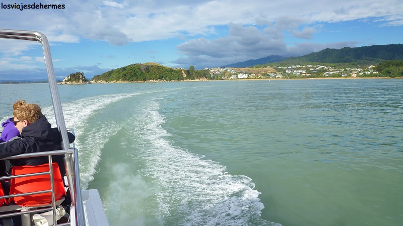 Ya a bordo navegamos unos 45 minutos hasta Kaiteriteri descansando, pero charlando animadamente, como todo el resto del día, regresando a Motueka con las cámaras llenas de fotos y encantados con la experiencia. Las francesas seguían su viaje hacia Nelson y los demás nos preparamos una cena como colofón y guinda al día que habíamos compartido, pues a partir de ahí las rutas a seguir eran diferentes y, a excepción de Daniela, nadie continuaba hacia el sur, por lo que suponía también una despedida, pero alegre y con buenos recuerdos.