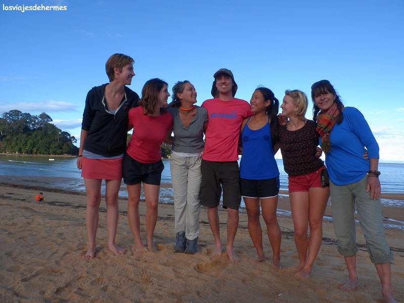 El recorrido nos llevaría de Kaiteriteri a Medlands Bay recogiéndonos en Anchorage, por lo que nos dejaba 5 horas para ir de un punto al otro a través de los frondosos bosques y con el mar a un lado. Apenas salimos para ir a comprar comida al supermercado más cercano y pese a no poder visitar nada pasamos un día entretenido en grupo, que quedó definido para la excursión con Catherine y Nathalie (francesas), Jen y Amanda (USA), Daniela (de Alemania) y Nikki (holandesa), así que iría bien acompañado 🙂 .