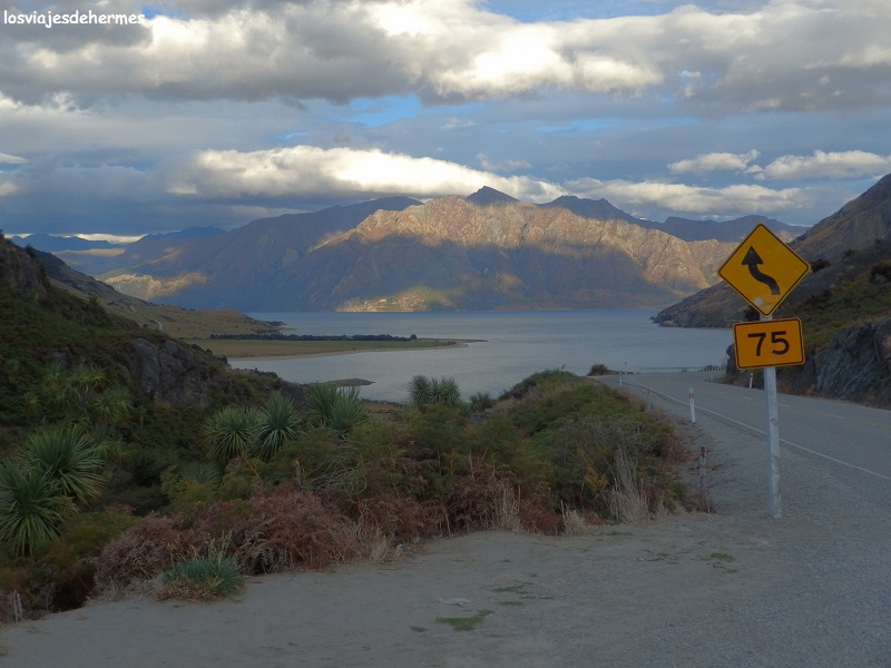 Sin prisas fui regresando hasta Haast primero y después nuevamente a la carretera 6 en dirección a Wanaka, avanzando y cruzando los Alpes neozelandeses por el Mount Aspiring National Park, entre impresionantes valles y vistas, llegando a la población de Makarora y al lago Wanaka. Si las montañas ya te dejan con la boca abierta, bordear los lagos Wanaka y Hawea sólo hacen convencerte aún más de que este es uno de las mejores tramos neozelandeses en cuanto a belleza 😉 . Fueron otros 140 kms desde Haast hasta Wanaka, junto al lago del mismo nombre (al que la carretera vuelve después), buscando el YHA Wanaka (94 Brownston Street) para preguntar si tenían alguna cama libre. Tuve suerte y pude quedarme en una habitación de 8 -ya estaba anocheciendo- bastante limpia, un perfecto y amplio salón-cocina común, baños para compartir, sala de TV y de juegos y wifi gratuito 24 horas para socios entre otros.