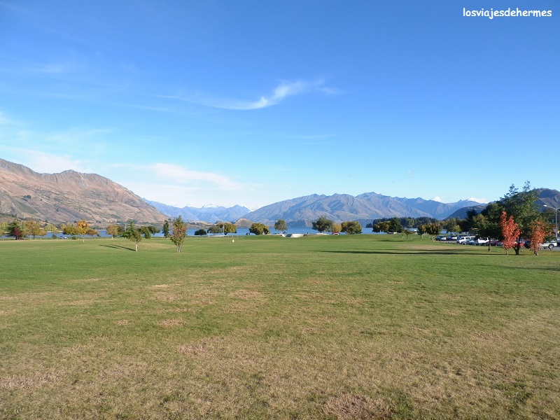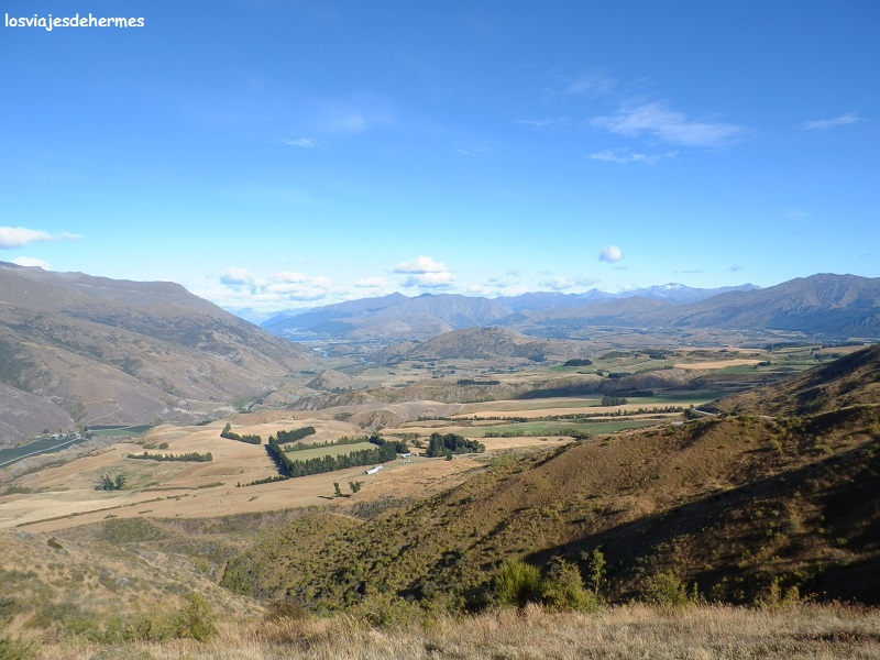 El día amaneció perfecto, empleando las primeras horas en pasear por la orilla del lago Wanaka y brevemente por esta población de 5.000 habitantes, que se encuentra en una ubicación privilegiada. Aproveché la presencia de supermercados para abastecerme y puse rumbo a Queenstown, la capital de la aventura “kiwi”, a través de la carretera secundaria Cardrona Valley Road, que una vez pasada esta localidad pasa a llamarse Crown Range Road (la otra opción es la carretera 6, pero da más vuelta y la distancia es mayor). Son 67 los kms que separan ambas ciudades por esta ruta, cruzando el valle del mismo nombre que la población de Cardrona, siendo un paisaje muy verde con laderas, ovejas campando a sus anchas y llamativo en general, debiendo eso sí ser prudente pese al buen estado de la carretera, sobre todo en las curvas de horquilla que bajan de la Crown Range Road a la 6 en Arrow Junction.