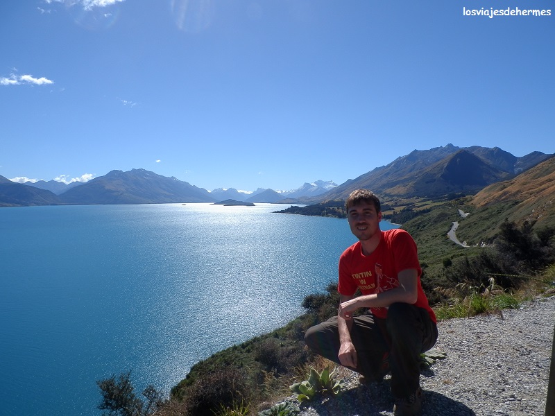 De vuelta al centro pude comprobar lo bueno y vibrante del ambiente -con viajeros de todas partes del mundo- comiendo en un “KFC” por 10,50 NZD=6,71 €. Es entonces cuando tomé una de las mejores decisiones del viaje, que fue dirigirme a Glenorchy por la carretera que bordea el lago Wakatipu, un trayecto de 46 kms para enmarcar en su totalidad. Las vistas panorámicas son brutales, mejoradas por lo brillante y despejado del día, parando a cada momento (destacando el mirador Bennetts Bluff) para hacer alguna foto y lo que es mejor aún, disfrutar del momento y grabarlo en mi mente.