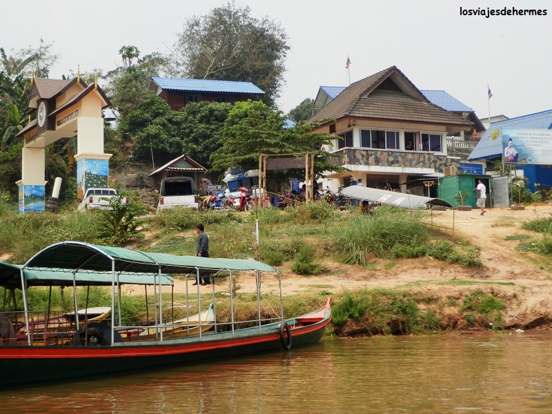 Una vez en Chiang Khon cogimos un tuk-tuk a precio fijo de 30 THB=0,75 € hasta el embarcadero y la frontera, que no estaba excesivamente lejos pero suficiente al ir con el equipaje y nuestras bolsas tan mal elegidas como indiqué en la introducción general al viaje de 101 días. Nos despedíamos de Tailandia sólo temporalmente, por lo que ahora os doy dos opciones como si esto se tratara de un libro de “elige tu propia aventura”, la de continuar a Laos o seguir por las playas tailandesas, haciendo constar que el que quiera visitar sólo Tailandia podría volar a Bangkok como paso previo a ir a las playas desde Chiang Rai con compañías low cost como Air Asia, Nok Air o Bangkok Airways. Por último, repito aquí la explicación sobre el paso fronterizo y la obtención del visado on-arrival (en frontera) para Laos que también figura en su relato.