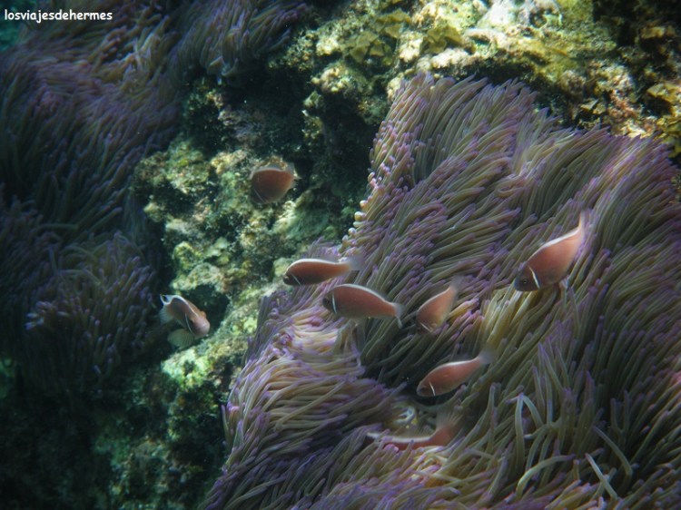 Tocaba madrugar (6 y poco) para ir a bucear prácticamente solos con el mar en calma total y más posibilidades, si cabe, de ver fauna marina. Empezamos por Thian Og Bay de nuevo recorriendo la misma parte del día anterior y ampliando por más zonas, viendo muchas cosas como peces trompeta, globo, corales…pero ni rastro de los tiburones, que sin duda es lo que más interés tenía en ver.