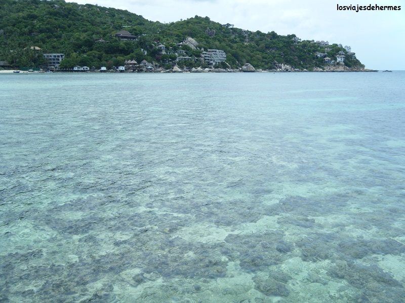 Tuvimos tiempo de pegarnos un primer chapuzón antes de comer, yendo a Thian Og Bay que quedaba al este de la bahía en la que estábamos (apenas unos minutos andando) y que es un buen punto de buceo donde se podían ver tiburones de arrecife entre otras muchas cosas. Sin duda si esta isla es famosa por algo es por el buceo, es un paraíso y las posibilidades que ofrece son enormes, además hay multitud de clubes de buceo, si bien es cierto que con snorkel (que es lo que teníamos pensado hacer) se disfrutará igualmente. Nuestra primera vuelta acuática nos convenció de la increíble claridad del agua, viendo diferentes especies de peces y corales, aunque no tiburones.