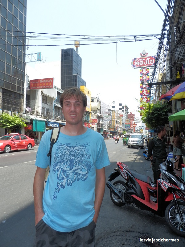 Cogimos el barco en la parada 13 (Phra Arthlt) bajándonos en la 5 (Rajchawongse) que deja junto a la calle del mismo nombre y es punto de inicio del barrio chino. El trayecto en barco fue agradable (con la brisa no se notaban el calor y humedad reinantes) pasando junto al Wat Arun (que visitaríamos por la tarde) y el Gran Palacio (entre otros), queda aquí un enlace del barco con la ruta y las paradas. Ya en el barrio chino disfrutamos del ambiente cotidiano, lleno de todo tipo de tiendas y mucha gente yendo en todas direcciones, llegando hasta el Wat Traimit (la palabra Wat significa templo en tailandés) que es donde descansa el Buda (y la estatua) de oro macizo más grande del mundo, ya muy próximo a la estación principal de tren de Hua Lamphong. La entrada son 40 THB=0,99 € por cabeza y hay que subir un par de plantas hasta llegar al precioso Buda de oro de unos tres metros de altura (hay que descalzarse) que merece la pena visitar.