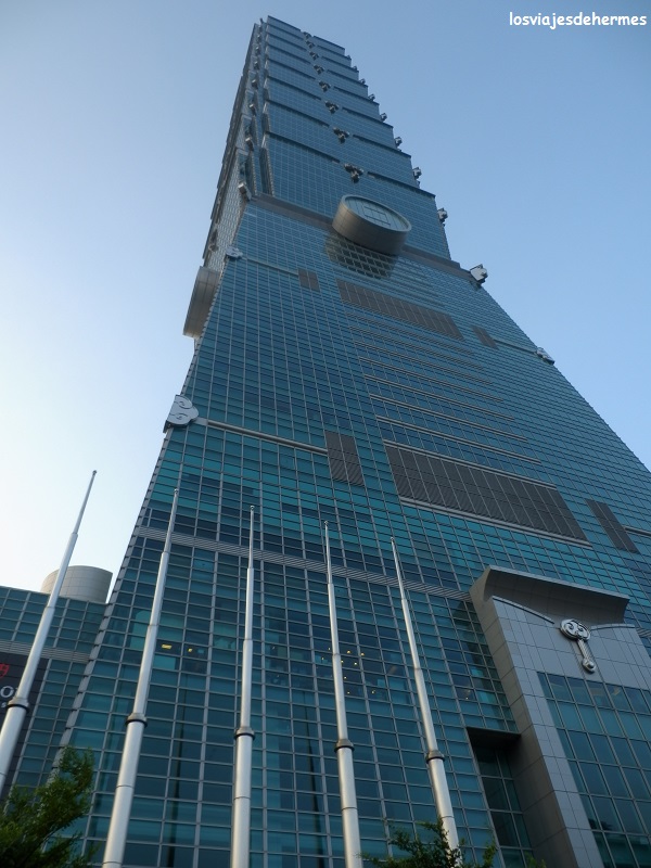A continuación, nos acercamos al mencionado edificio (apenas a tres manzanas de la plaza) y aceptamos pagar la entrada de 500 TWD=14,40 € cada uno que nos permitía acceder al observatorio, en el piso 89, la terraza descubierta del piso 91 y la enorme bola anti-viento del piso 88 que tiene la finalidad de dar estabilidad a la construcción, ya que los fuertes vientos y terremotos son algo común en Taiwán. Con la entrada nos dieron una audioguía que estaba disponible en castellano, así que montamos en el ascensor más rápido del mundo según nos dijeron, ni más ni menos que 1.010 metros por minuto y debía ser cierto porque la presión se notaba en los oídos, sobre todo al bajar, visitando las tres plantas sin prisa ninguna y disfrutando del mar de edificios que teníamos delante pese a la bruma que apareció. Una vez abajo dimos el día por terminado pues ya había anochecido, hicimos las últimas fotos y regresamos al metro yendo desde City Hall a Houshanpi (20 TWD=0,57 €) y de allí al alojamiento a cenar en la cocina común. El simbolismo de este edificio fue curioso al coincidir que era el último país de este gran viaje de 101 días por el sudeste asiático, tantos como plantas tiene el Taipei 101.