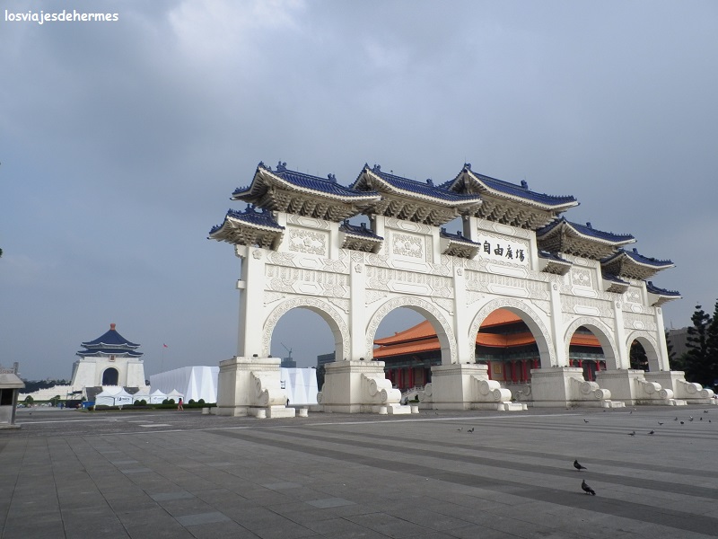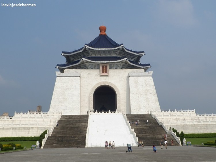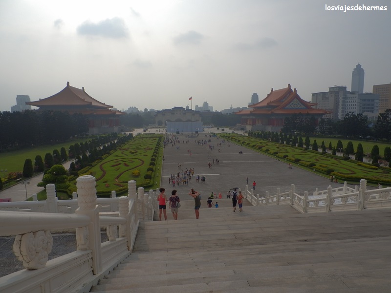 Tocaba ya el plato fuerte del día, el monumento-memorial a Chiang Kai-Shek, al que llegamos andando (hay dos paradas de metro desde la estación de tren), cruzando el parque de la paz 2/28 que recuerda la matanza de civiles a raíz de unas protestas en 1947, está perfectamente cuidado y cuenta con numerosas esculturas y rincones para descansar, llegando finalmente a la explanada donde ya podíamos divisar al fondo el descomunal edificio que homenajea a la figura de Chiang Kai-Shek, líder del Kuomintang que luchó contra los comunistas y posterior mandatario de la República de China (Taiwán) durante 26 años seguidos.