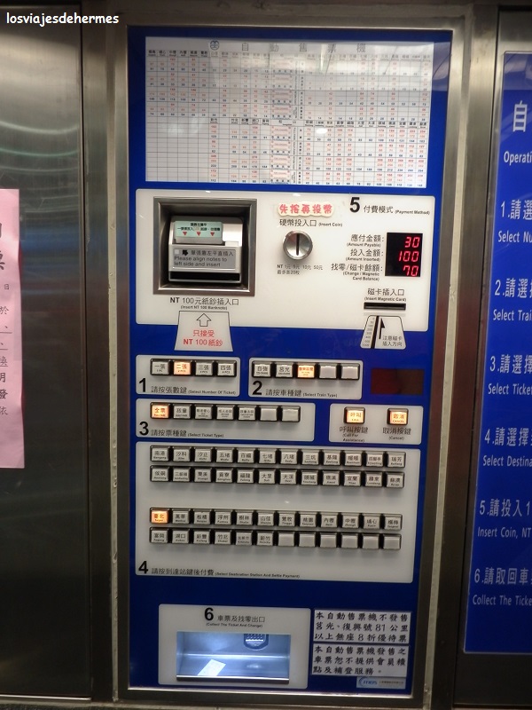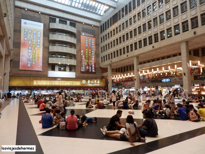 Nuestra siguiente parada fue la estación de tren (Taipei Main Station) que tiene parada de metro también, así que lo cogimos en Zhongshan Elementary School, a la misma distancia del templo que la parada de Xingtian, con un trasbordo a la línea 2 en Minquan Road y 20 TWD=0,57 € por cabeza. Allí estudiamos cómo funcionan los trenes taiwaneses para dar la vuelta a la isla, teníamos el tren bala (enlace a THSR) que recorre la costa oeste y los normales (enlace a Taiwán Railways) que circunvalan el país, utilizaríamos ambos y hablaré de ellos cuando toque. Aprovechamos para comer en la concurrida zona de restaurantes de la 2ª planta por 270 TWD=7,78 € los dos unos noodles con sopa y arroz en el “Breezer” muy buenos.